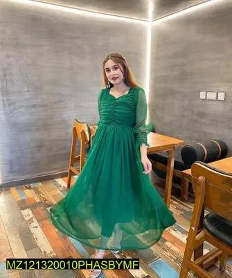 1 Pc Women's Stitched Chiffon Plain Maxi