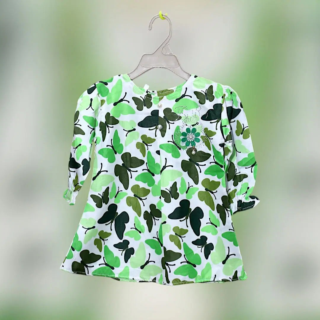 Girl's Printed Cotton Lawn Frock with Trouser – Green (2-Piece Set) πŸ‘—πŸ‘–