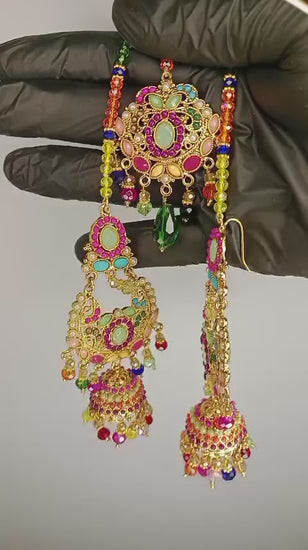 Bridal Necklace Set With Earrings And Bindiya – 1 Necklace 2 Earrings 1 Bindiya – Zarcon Style With Beautiful Moti Beads Colourful – For Wedding And Special Occasion – Specially For Bridals – Without Box – Adjustable Every One Can Wear