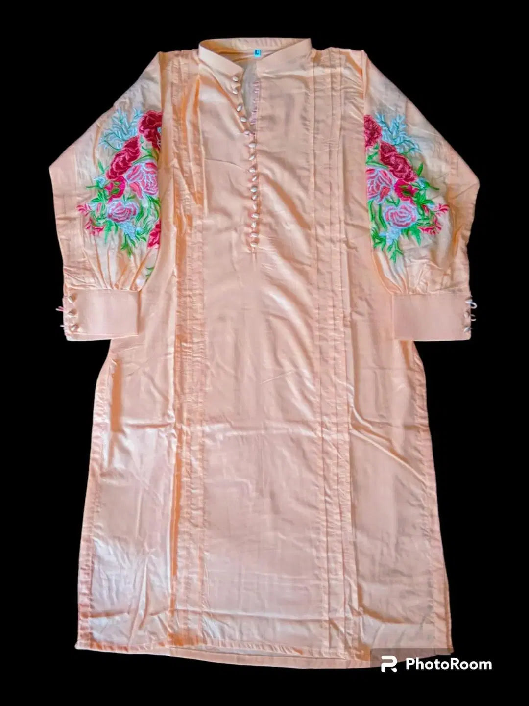 Elevate your wardrobe with this elegant 2-piece stitched outfit featuring a beautifully embroidered linen shirt paired with a plain linen trouser. Designed for both comfort and sophistication, this set in a charming peach color is perfect for casual outings, gatherings, or semi-formal events.