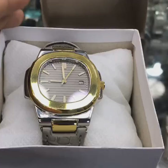 This stylish wristwatch features a sophisticated grey-golden color with a premium design that mirrors the iconic Nautilus series. Made with attention to detail, it includes an original master lock and offers water resistance up to 3ATM, making it suitable for everyday wear. A great choice for those who appreciate luxury-inspired timepieces at an affordable price.